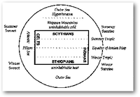 The zone or climate division of the world was propounded about the same time. According to this division other continents south of the equator were supposed to exist and habited, some said, but not to be approached by those inhabiting the northern hemisphere on account of the presumed impossibility of traversing the equatorial regions, the heat of which was believed to be too intense.