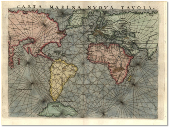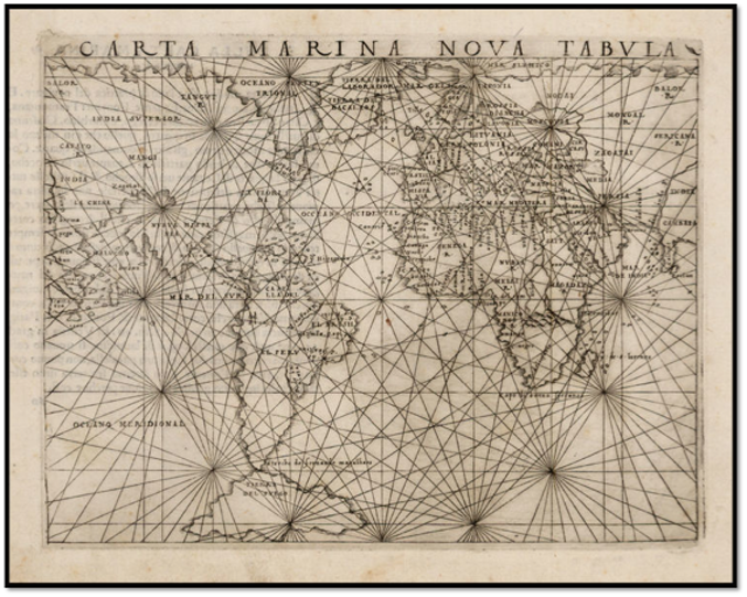 Title: Carta Marina Nova Tabula [A new sea chart {of the world], Venice, from Gastaldi’s edition of Ptolemy’s Geographia.